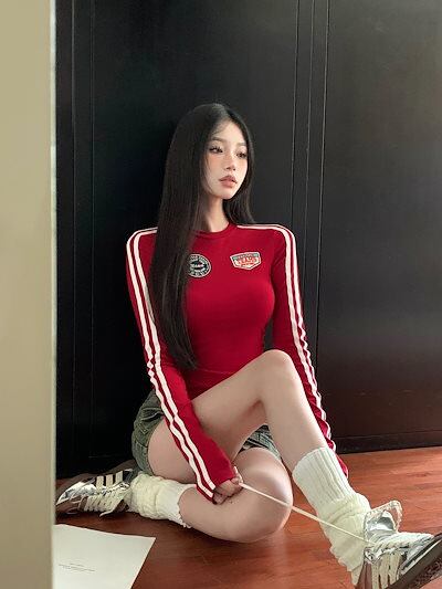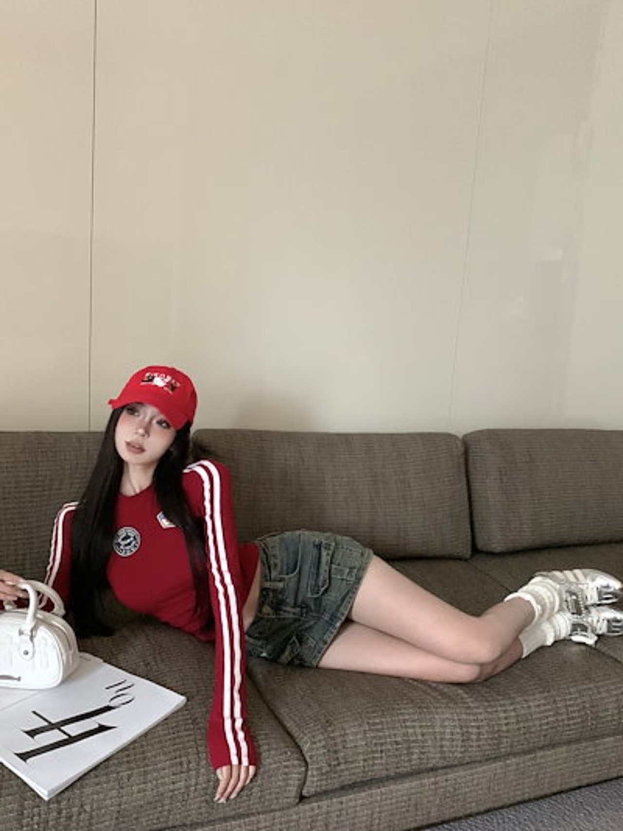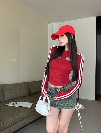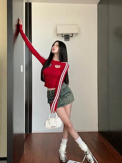 2024秋 長袖 Tシャツ ショート丈 カットソートップス カジュアル 配色韓国系ストリートへそ出しタイトネックスリーブ 肌見せ T ファッションレディースかわいいサイド衣装風冬