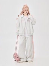 2024 春秋 2点セット トップス お出かけ 羽織り 韓国 レディース フルラウンドヘム ルーズ サイド ボトムス ストレート系冬 ゆったり サイズワイドシルエット上下リラックストラック2 | DOKO-ME
