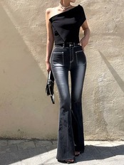 2024秋冬パンツ デニム ジーンズ ロング丈 スキニー ワイドレッグ ウォッシュ加工 ハイウエスト 美脚効果 脚長効果 細見え 秋 おしゃれ かわいい 韓国ファッション レディース お出かけ | DOKO-ME