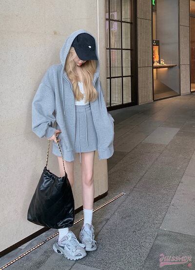 上下別売り 普段使い 長袖シャツ トップス ミニスカート丈長めルーズ レディース かわいい シルエット 2点セット フード付き風 きれいめ サイズ 秋冬 ゆったり ファッションダ ブル 大人 可愛い | DOKO-ME