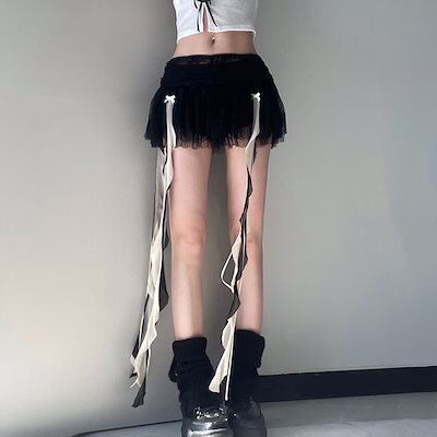 2024 夏秋 スカート かわいい ミニ丈 ハイウエスト 透け感 レトロデザイン 脚長効果 美脚効果 細見えボトムス 夏 黒 カジュアル おしゃれ 甘め フレンチ 韓国系ファッション2 | DOKO-ME