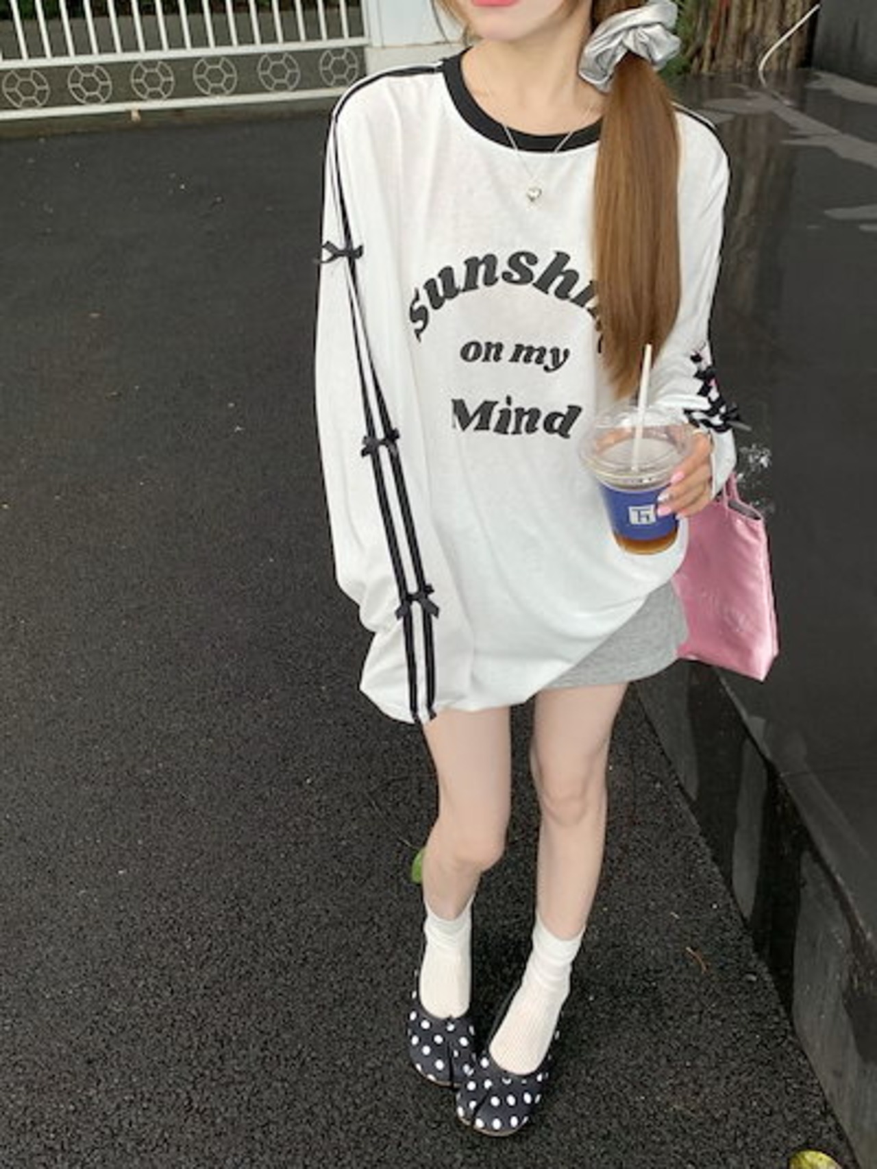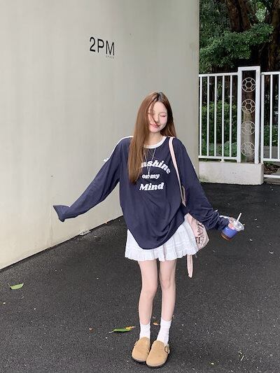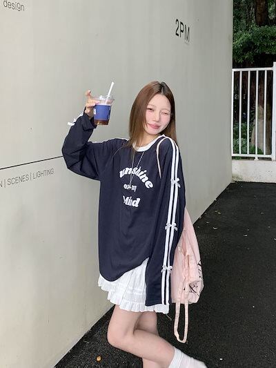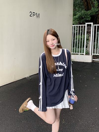 2024 秋冬 tシャツ レタープリント ロンt サイドトップス 長袖 レトロ 韓国ファッション系袖 レディース 大人可愛い シルエット サイズ