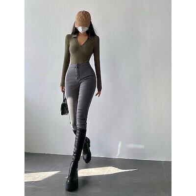 スキニーパンツ 秋と冬 ハイウエスト タイト 薄手 レディース ストレッチ スモールレッグ ジーンズ