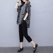 涼しく楽ちんセットアップ レディース 夏 韓国 半袖 オーバーサイズ婦人服スーツTシャツ太っているmm痩せて見える2つのセット ルームウェア セットアップ スウェット上下セット スーツ | DOKO-ME