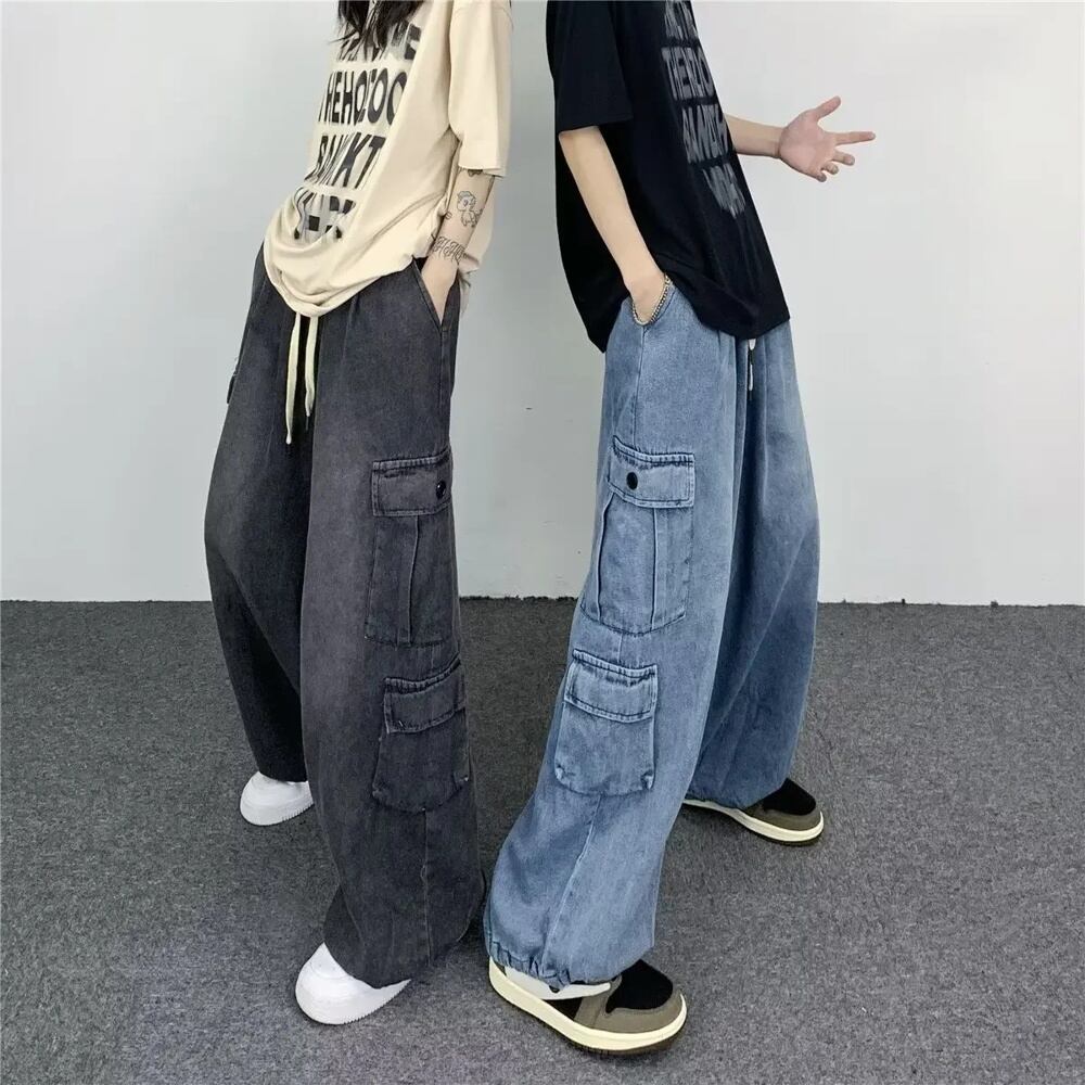 男性と女性のためのヒップホップジーンズ,ワイドレッグカーゴパンツ,ストレート,ルーズフィット,ラージポケット,トレンディ,フォーシーズン,2022 y2k ボトムス T240901102952_01 | DOKO-ME