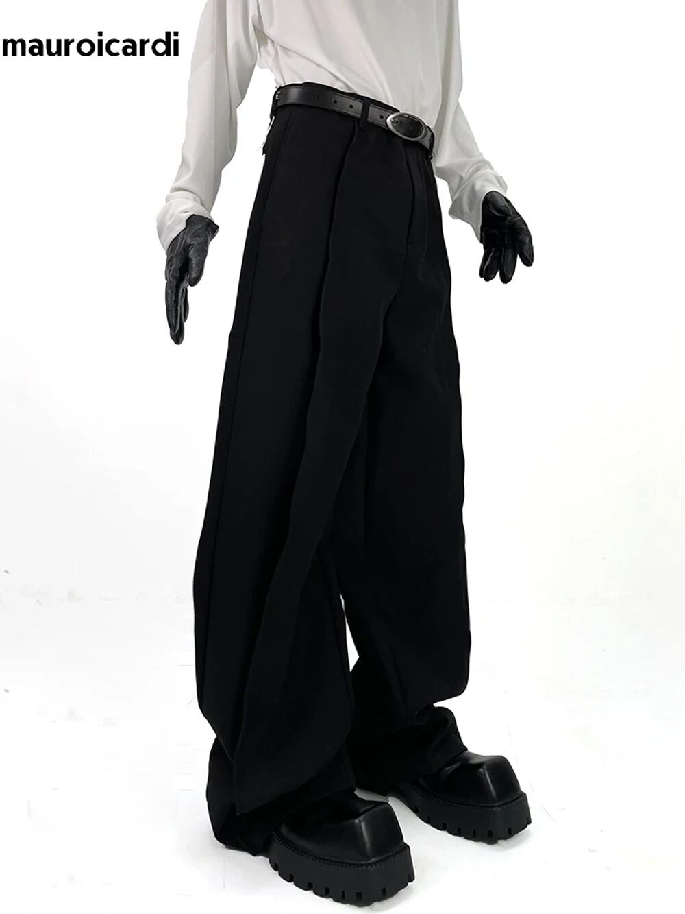 Marouicari-メンズフローリーバギーワイドレッグパンツ、エクストラロング、ブラック、ルーズ、カジュアル、ソフト、グレー、ファッション衣類、春、2024 y2k ボトムス T240901103054_01 | DOKO-ME
