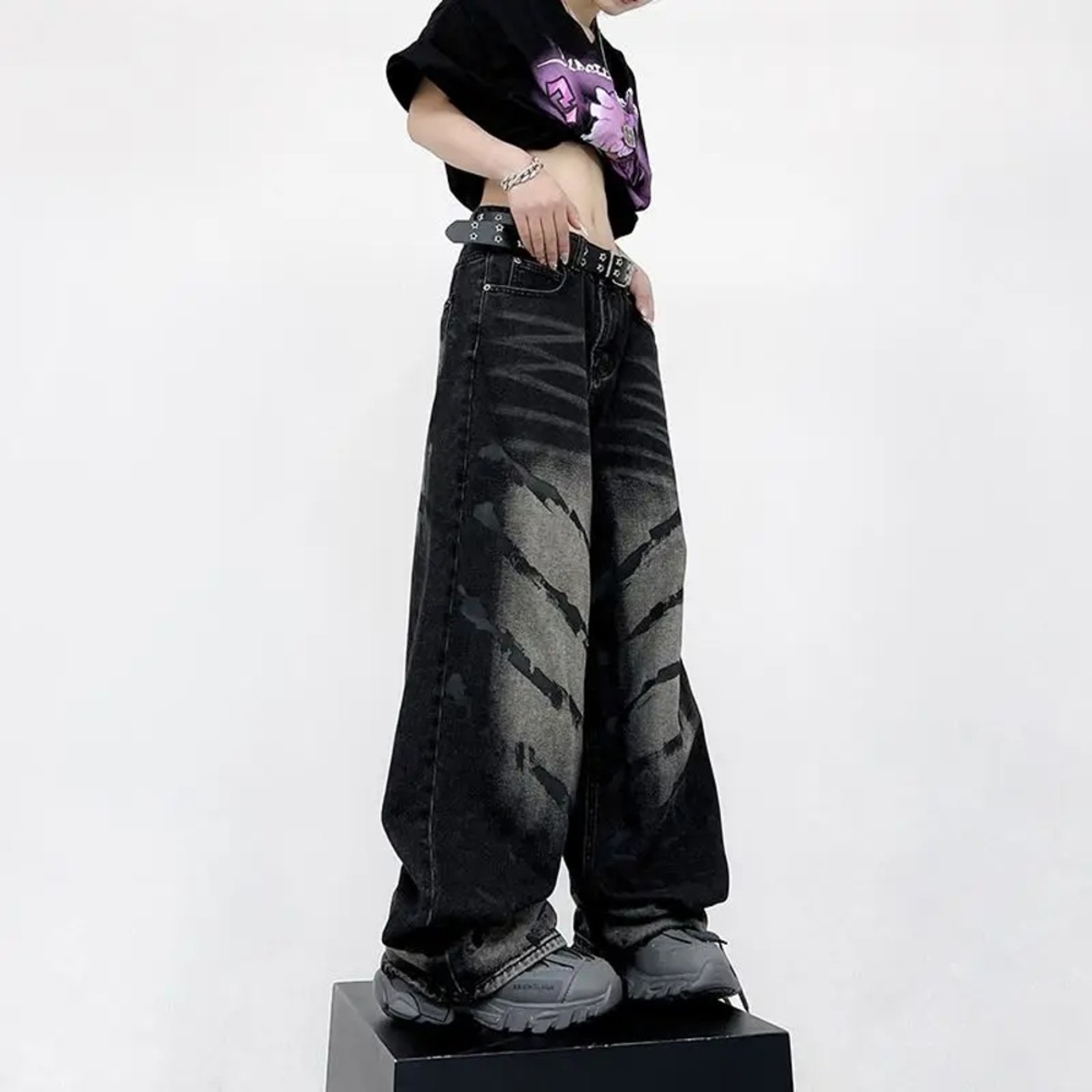 男性と女性のためのアメリカンヴィンテージウォッシュy2kジーンズ、ヒップホップ、カジュアル、ハイウエスト、ルーズ、スリミング、ドロップモップ、ワイドレッグ、ホール、ハイストリートパンツ y2k ボトムス T240901104238_01 | DOKO-ME