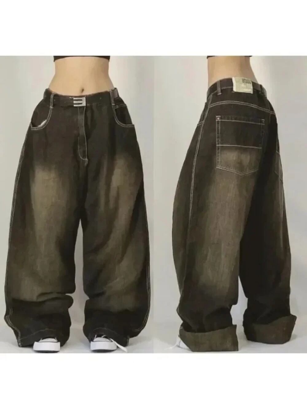 男性と女性のためのアメリカンヴィンテージウォッシュy2kジーンズ、ヒップホップ、カジュアル、ハイウエスト、ルーズ、スリミング、ドロップモップ、ワイドレッグ、ホール、ハイストリートパンツ y2k ボトムス T240901104238_02 | DOKO-ME