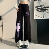 女性のためのsanrio kuromi漫画パンツ、ワイドレッグパンツ、ハイウエスト、ヒップホップストリートウェア、カジュアルスポーツパンツ、y2k y2k ボトムス T240901105100_01 | DOKO-ME