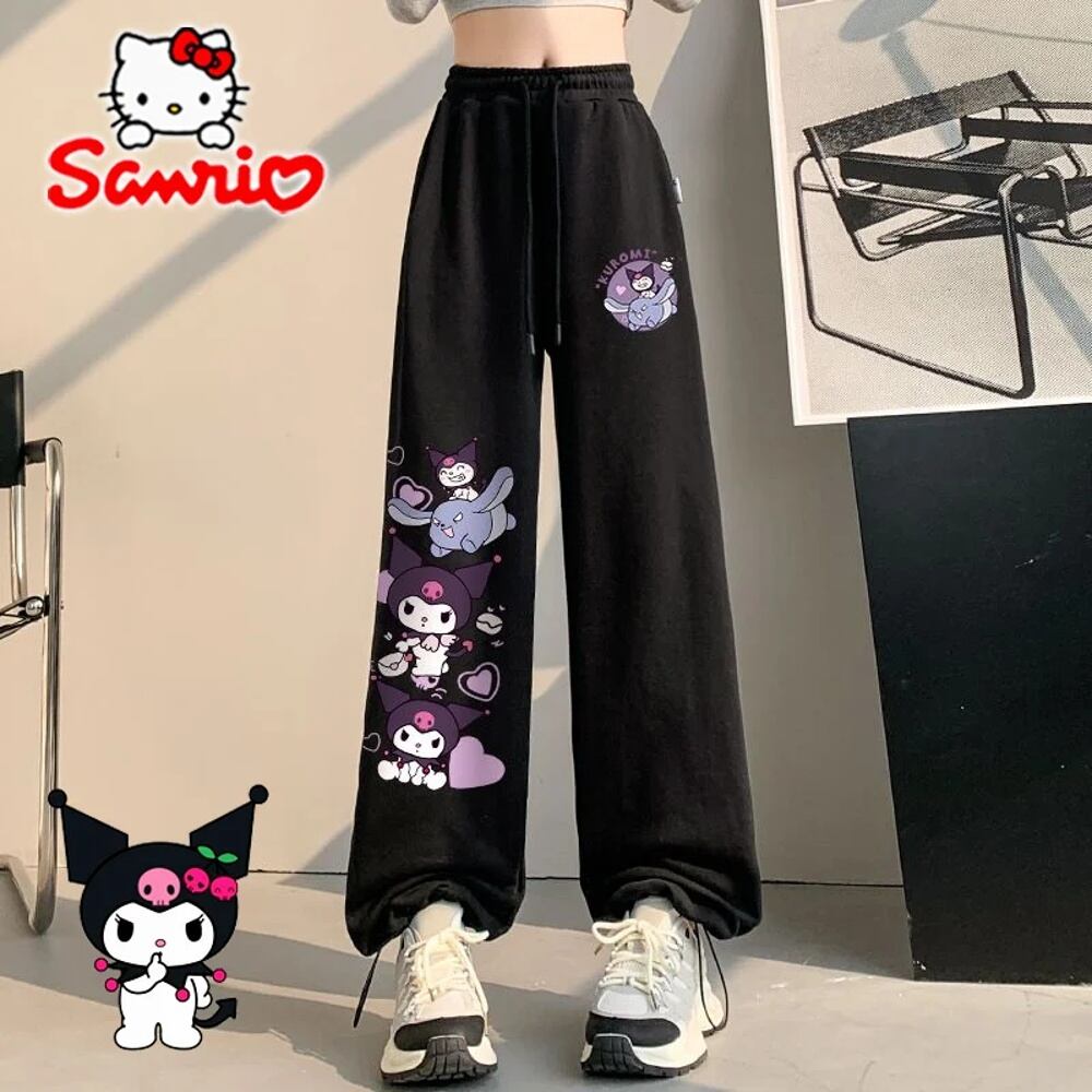 女性のためのsanrio kuromi漫画パンツ、ワイドレッグパンツ、ハイウエスト、ヒップホップストリートウェア、カジュアルスポーツパンツ、y2k y2k ボトムス T240901105100_05 | DOKO-ME