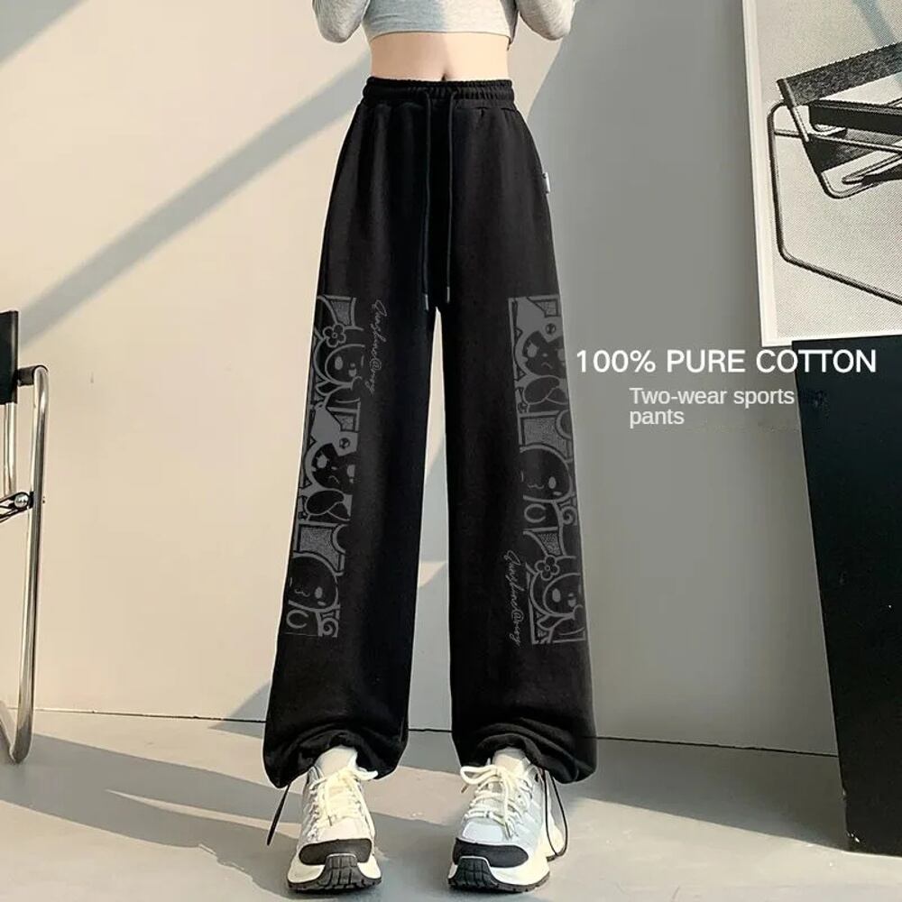 女性のためのsanrio kuromi漫画パンツ、ワイドレッグパンツ、ハイウエスト、ヒップホップストリートウェア、カジュアルスポーツパンツ、y2k y2k ボトムス T240901105100_06 | DOKO-ME