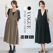 ワンピース ロング フレア ミモレ丈 マタニティ レディース 春夏秋冬 ジャンパースカート カットソーノースリーブ ジャンスカ 大人 可愛い 無地 カジュアル 大きいサイズ vネック 袖なし30%まで | DOKO-ME