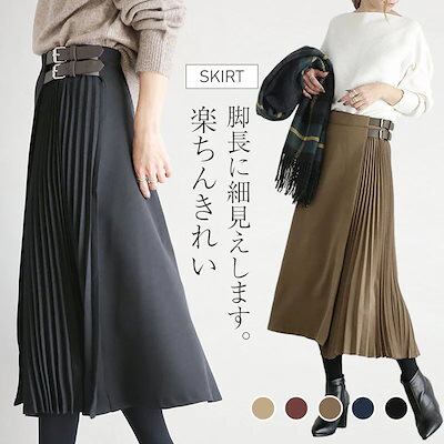 サイドプリーツ スカート アシンメトリーラップ デザイン ベルト付 プリーツ切替 ロング ボトムス オフィス バレンタイン デートコーデ 大人 カジュアル 母の日 レディース 秋 冬 春 日常 通勤3 | DOKO-ME