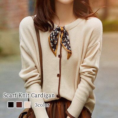 カーディガン レディース スカーフニットカーディガン 人気 きれいめ 秋 ロング ブラック ニット ゆったり Vネック 冬 ジャケット おしゃれ 春 暖かい ショート丈 あったか ブランド 大きいサイ | DOKO-ME