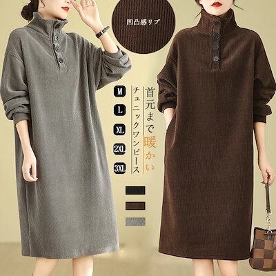 チュニック ワンピース おしゃれ 服 レディース チュニックワンピース 50代 秋冬 チュニックワンピ ハイネック 長袖 膝丈ワンピース きれいめ ひざ丈 膝下 長袖ワンピース 大きいサイズ コーデュ | DOKO-ME