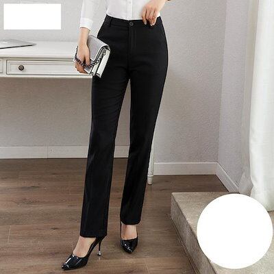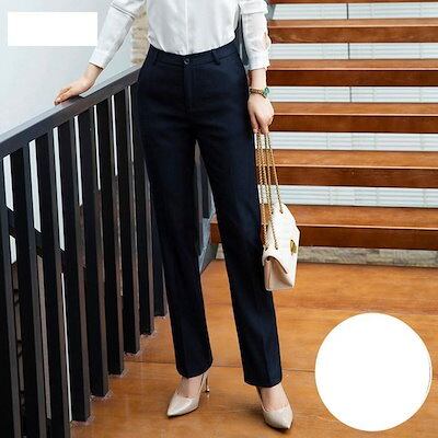 スラックス ビジネス フォーマル パンツ レディース スーツパンツ ストレートパンツ 美脚 オフィス パンツ ストレート ロング 黒