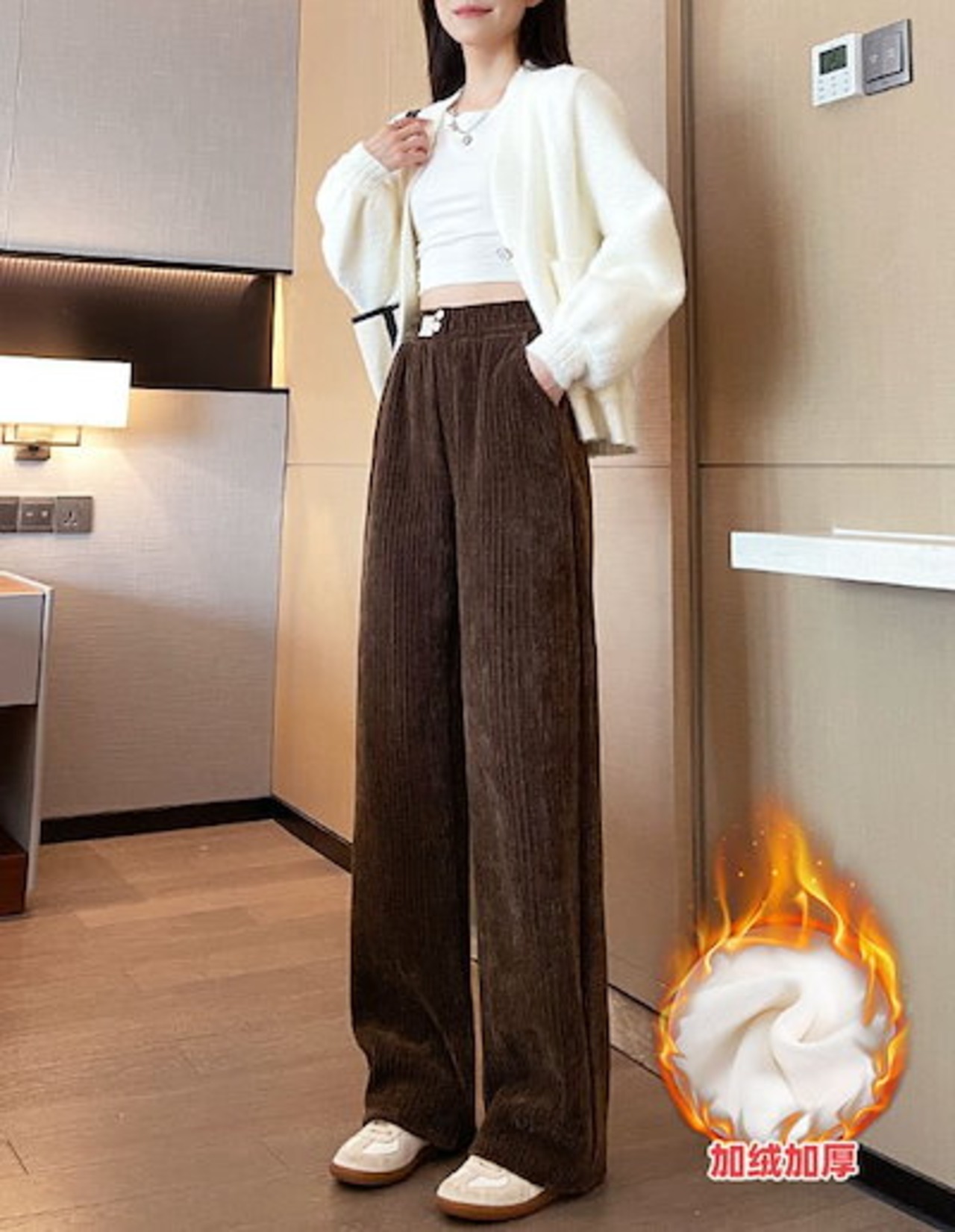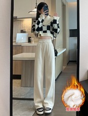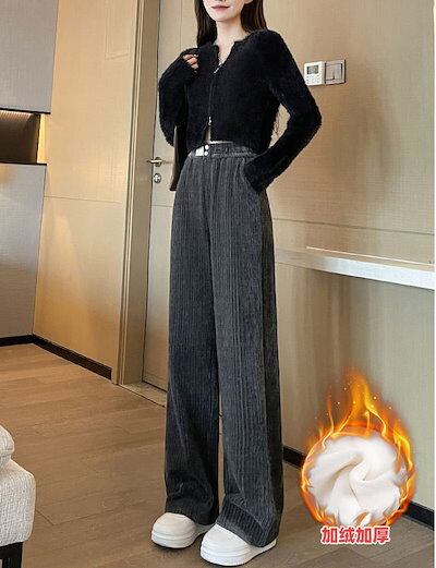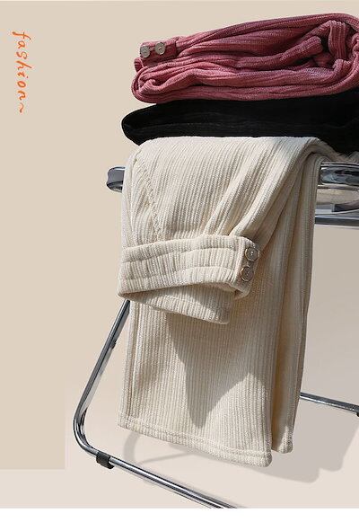 厚手シュニールロングパンツ 裏起毛パンツ パンツ レディース ズボン 脚長効果 パンツ 大きめサイズ 着痩せ ハイウエストスラックスパンパンツ 冬