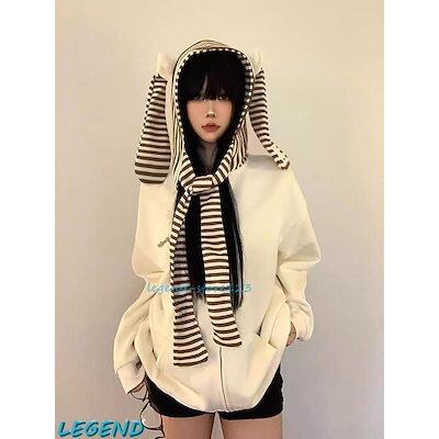 地雷系 パーカー レディース ウサギ ストライプ 切り替え かわいい 耳付き フード付き 量産型 トレーナー ストリート系 大きいサイズおすすめ商品