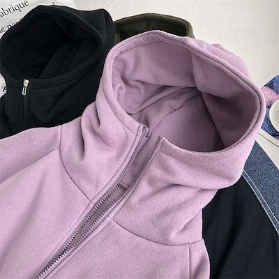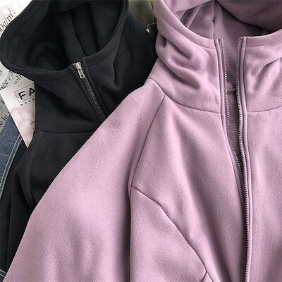 パーカー 裏起毛 レディース 秋冬 長袖 暖かい フーディ ジップパーカー 指ぬき 指穴 アウター トップス スエット 羽織 前開き 厚手 保温性 防寒 フード付き ポケット シンプル ルームウェア | DOKO-ME