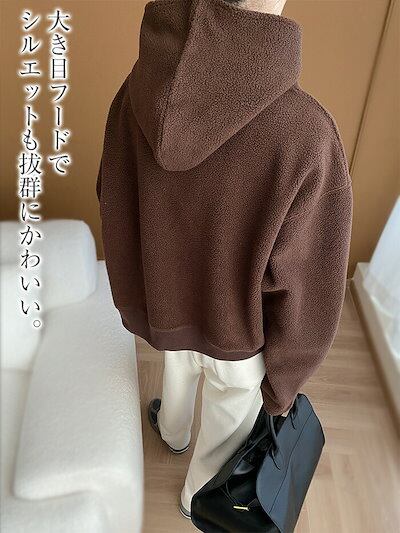 パーカー ボアパーカー ボア コート アウター プルオーバー トップス 大きいサイズ レディース フード パーカ トレーナー ファー ドロップショルダー ボアブルゾン 無地 あったか 防寒 ゆったり | DOKO-ME