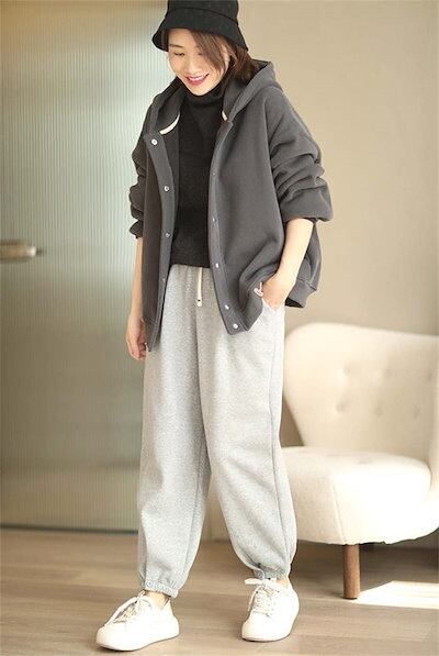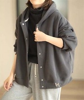 パーカー レディース スウェット トップス 長袖 裏起毛 秋 冬 春 ライトアウター ボタンパーカー ジャケット ブルゾン フード フーディ 羽織り 厚手 裏ボア 防寒 保温 暖か 無地 ゆったり ト | DOKO-ME