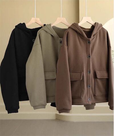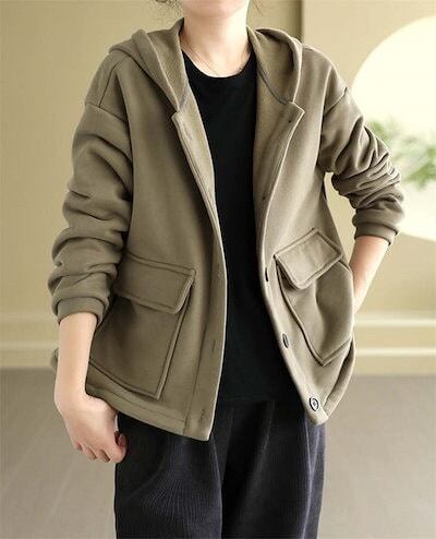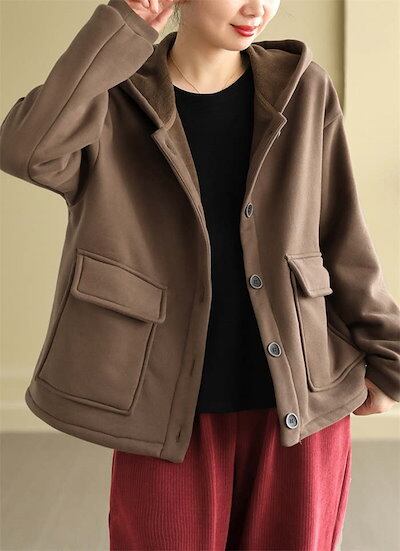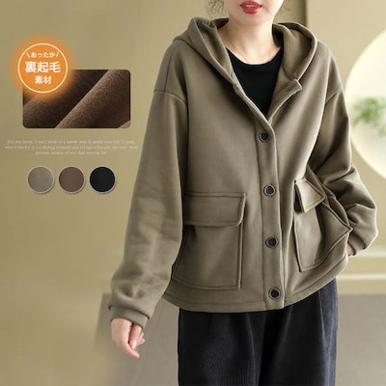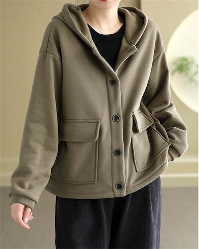 ボタンパーカー 裏起毛 レディース 秋 冬 厚手 長袖 スウェット パーカー 大きい サイズ ジャケット ブルゾン アウター カーディガン ライトアウター コート ボタン 長袖 羽織り 大きい ゆった | DOKO-ME