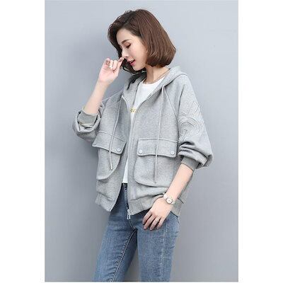 秋新作 パーカー ジャケット レディース ジップアップ パーカー体型カバー チュニック 長袖 ゆったり カジュアル アウター