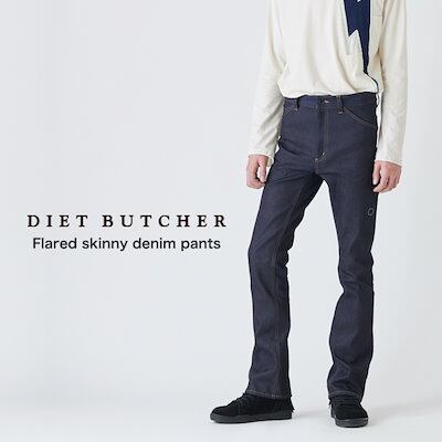 ダイエットブッチャースリムスキンフレアパンツ デニム メンズ レディース 黒 韓国 スキニーパンツ デニムパンツ ブランド DIET BUTCHER ストレッチ 細身 ジーンズ ボトムス 無地 シンプル おしゃれ ストリート