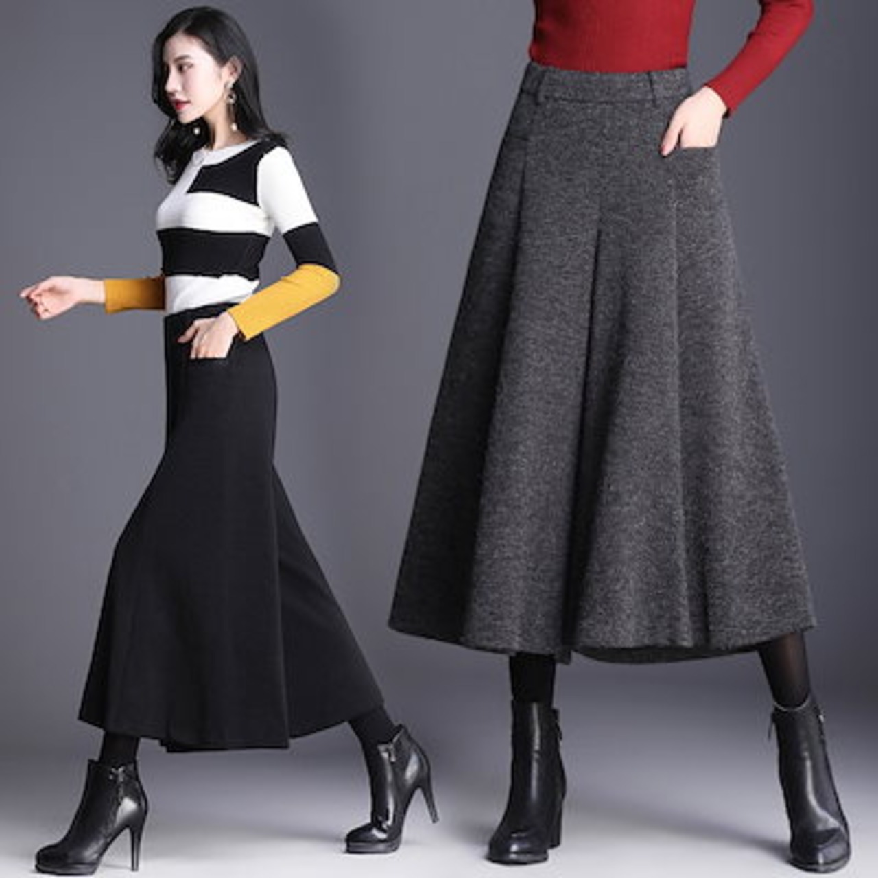 【2枚購入で5oo円OFF!】ガウチョパンツ ワイドパンツ レディース 秋冬 きれいめ 9分丈 フレア ミモレ丈 ハイウエスト ガウチョ 大きいサイズ 大人 オフィス 美脚 通勤 黒 無地 ゆったり | DOKO-ME