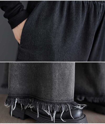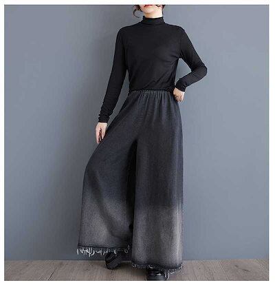 「ファットガール」 2024秋新品 デニム ワイドパンツ 大きいサイズ 体型カバー レディース フレア ゴム グラデーション ジーンズ ロングパンツ メガ割