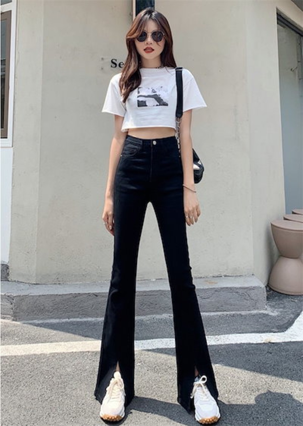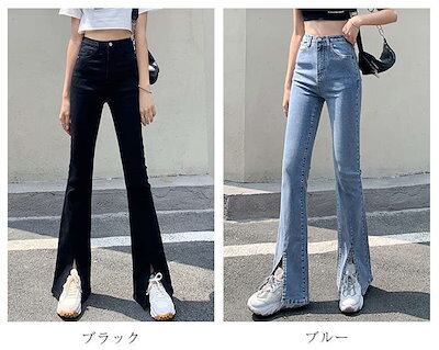 デニム パンツ レディース ボトムス デニムパンツ フレアパンツ ジーパン ジーンズ きれいめ ハイウェスト 美脚パンツ 長ズボン ロング丈 ポケット付き 大人 カジュアル オシャレ インナーパンツ | DOKO-ME