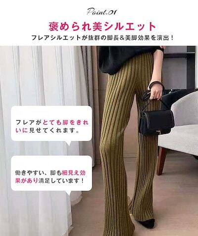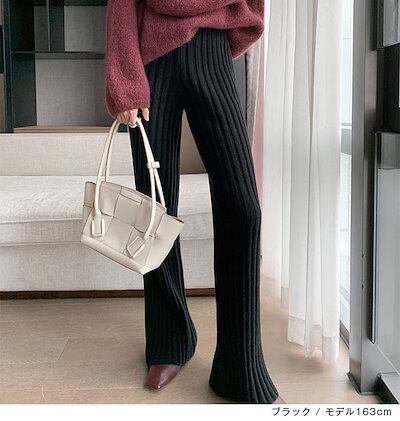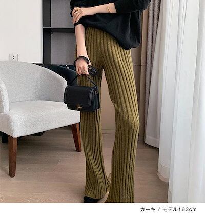 ニットパンツ フレアパンツ レディース パンツ ボトムス リブニット 秋冬 ゆったり ワンマイルウェア 大人 ニットフレアパンツ 秋 冬 イージーパンツ フレアパンツ おしゃれ きれいめ カジ | DOKO-ME