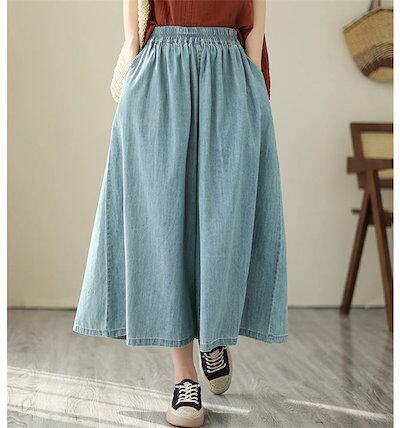 パンツ デニム レディース7分丈 ワイドパンツ フレアパンツ チノパンツ 春夏 涼しい ボトムス 大人 ゆったり ワイド 楽ちん 無地 シンプル リラックス カジュアル きれいめ お洒落 体型カバー | DOKO-ME