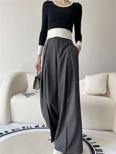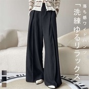 パンツ ワイドパンツ タックパンツ レディース 春 夏 秋 冬 ボトムス タック フレア ワイド ロング スーツパンツ ロングパンツ ガチョウパンツ ハイウエスト ポケット付き ゆったり シンプル 洗 | DOKO-ME