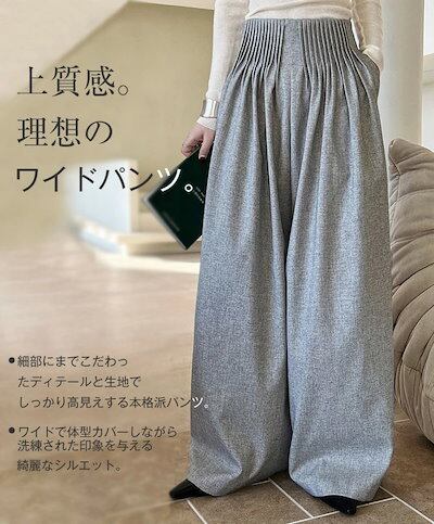 ワイドパンツ タックパンツ パンツ レディース フレアパンツ ガウチョパンツ ハイウエスト 卒業式 入学式 スーツ ボトムス オフィスカジュアル ロング ワイド タック プリーツ きれいめ 長ズボン | DOKO-ME