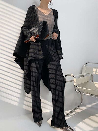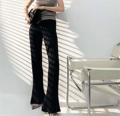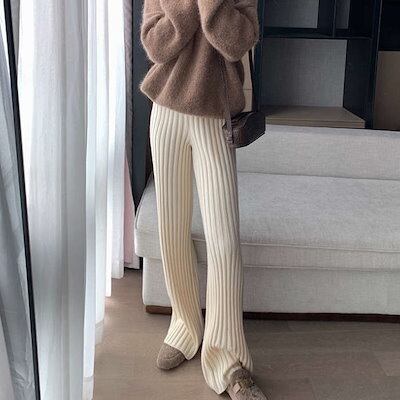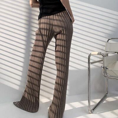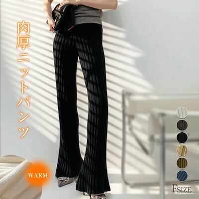 パンツ レディース ニットパンツ 春 秋 冬 無地 ウエストゴム ワイドパンツ リブニット ワイド ボトムス ロングパンツ 暖かい フレアパンツ レギパン ストレート ルームウェア オフィス スタイル | DOKO-ME