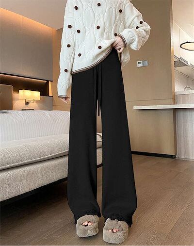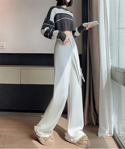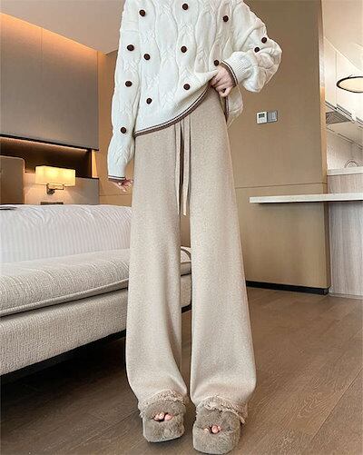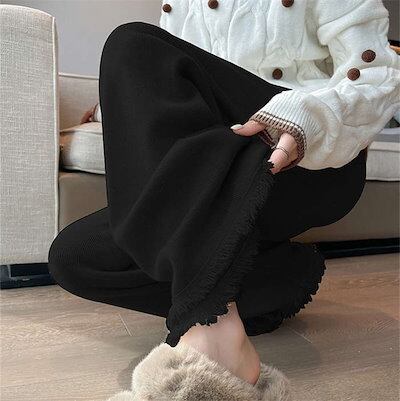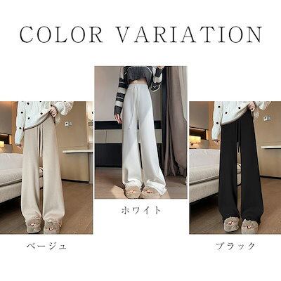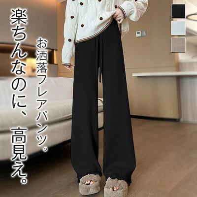 ニットパンツ ワイド レディース ワイドパンツ 秋 冬 無地 フレアパンツ リブニット ロング丈 ストレッチ イージーパンツ 脚長 暖かい 防寒対策 美脚 ボトムス きれいめ シンプル ズボン リラ | DOKO-ME