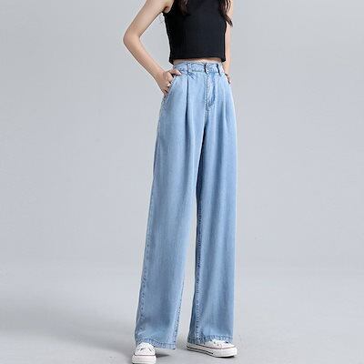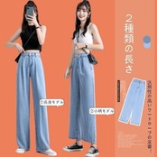 デニムパンツ 接触冷感 UVカット ワイドパンツ 紫外線対策 ゆったり 体型カバー フレアパンツ デニムパンツ 夏 韓国 ワイドパンツ ストレート ズボン レディース ファッション | DOKO-ME