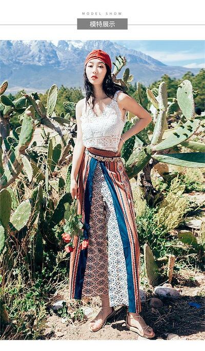 エスニック風 ワイドパンツ レディース ガウチョパンツ シフォンパンツ フレアパンツ ロングパンツ ゆったり パンツ リラックスパンツ 夏 大人 可愛い きれいめ 涼しい きれいめ おしゃれ | DOKO-ME