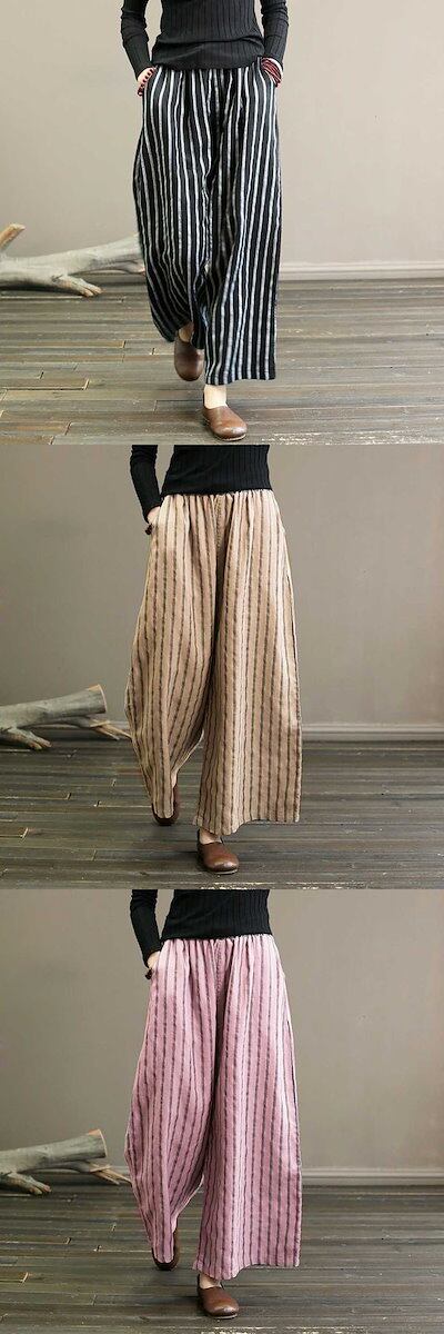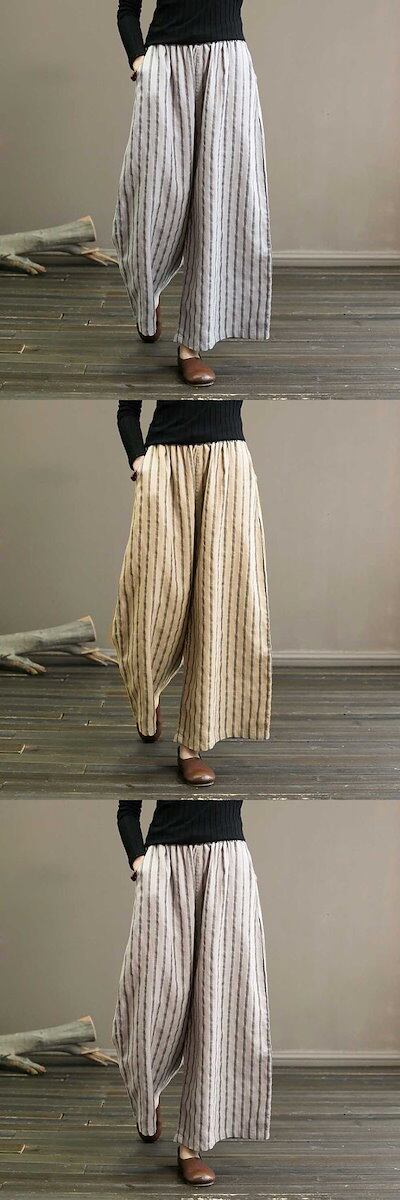 リネン コットン ワイドパンツ レディース 薄手 夏 バギーパンツ ストライプ 総柄 イージーパンツ フレアパンツ ロングパンツ ゆったり リゾート リラックス ビーチ 海 森ガール エスニック ふん | DOKO-ME
