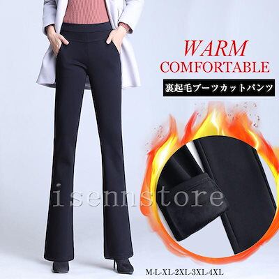 第1弾セール中パンツ 裏起毛 あったか 裏起毛パンツ レディース スラックス 厚手 ハイウエスト ブーツカット ベルボトムパンツ スキニー ストレッチ 通勤