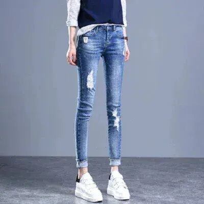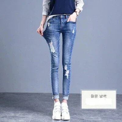 レディースパンツ美脚デニムパンツスキニーズボン伸び美尻美脚スキニーデニムパンツナインポイントペンシルハイウエストスキニージーンズサロペット着痩せ新作韓国版は薄手のストレッチスリムパンツ | DOKO-ME