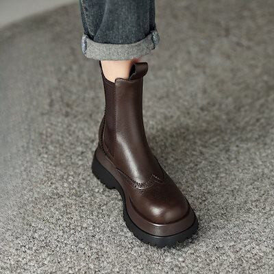 ショートブーツ 韓国ファッション 新作 気質 レトロショートブーツレディース2024秋冬厚底万能チムニーブーツ