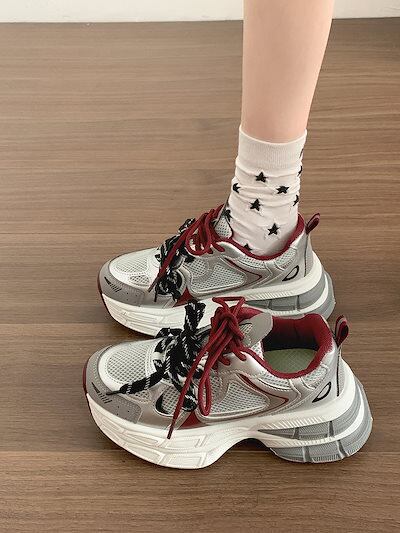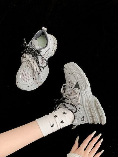 2024 秋冬 可愛い ゆったり ボリュームソール韓国スニーカー 足首ほっそり 厚底 シューズ 脚長効果 美脚見え 学生 通学 シンプル カジュアル 涼しげ スタイルアップ kawaii 靴 白 | DOKO-ME