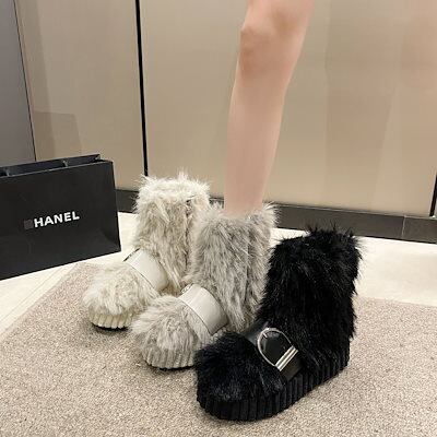 もふもふ ショートブーツ ふわふわ ファーブーツ もこもこ おしゃれ 厚底 裏起毛 欧美風 レディース ブーツ
