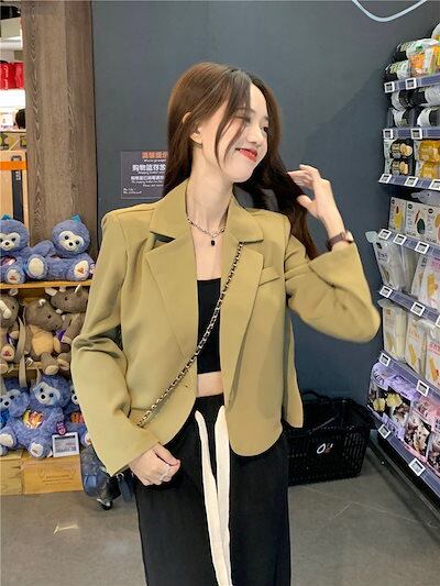 メガ割 秋アウター 通勤 韓国 アウター レディース アウター ジャケット 長袖スーツコート新型ゆったりショート丈 レディース 韓国ファッション