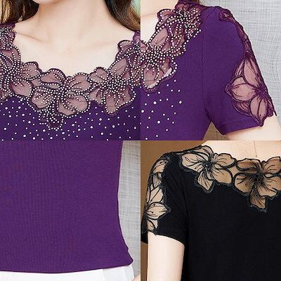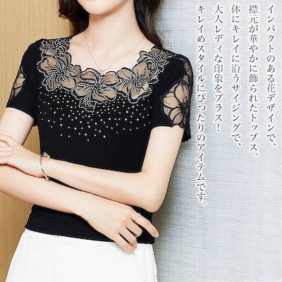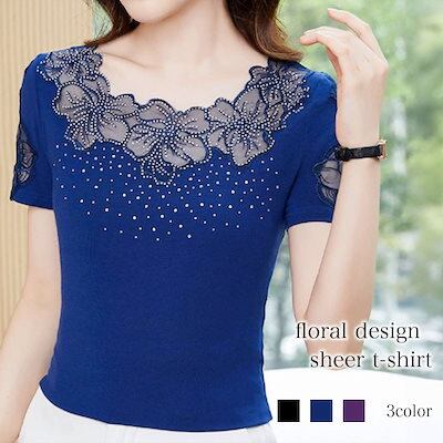ブラウス レディース 花デザインシアーTシャツ リボン ブランド おしゃれ オフィス 大きいサイズ きれいめ カットソー 高品質 安い 白 夏 シャツ 事務服 涼しい スーツ フリル 半袖 Tシャツ | DOKO-ME