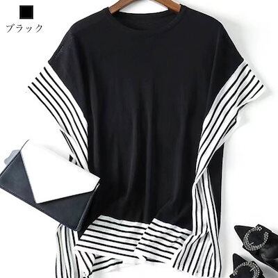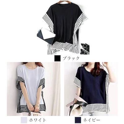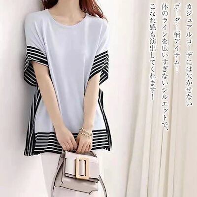 Tシャツ レディース ボーダー柄Tシャツ ブラウス 5分袖 春 スポーツ ゆったり ブラック 40代 ロゴ カジュアル 7分袖 薄手 Vネック かわいい ティーシャツ 大人 人気 涼しい シャツ カッ | DOKO-ME