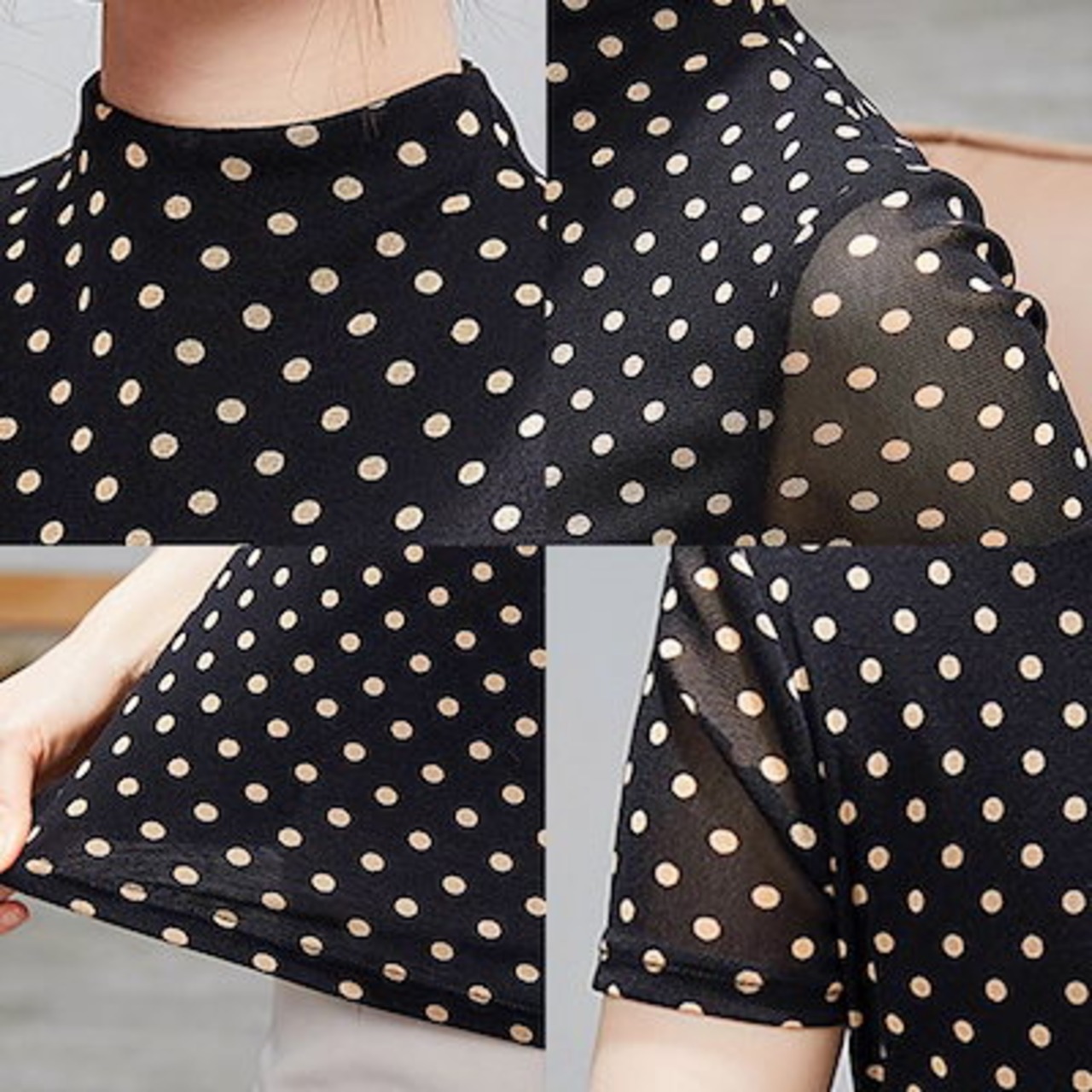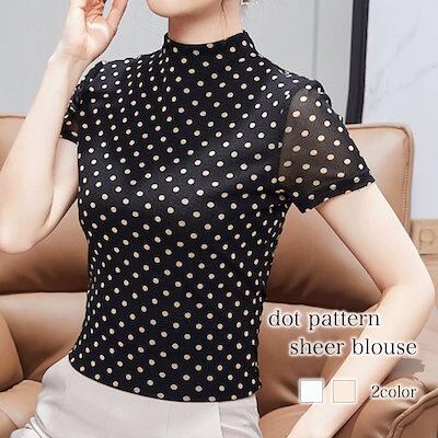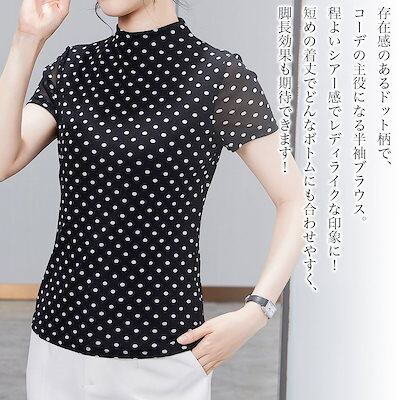 ブラウス レディース ドット柄シアーブラウス 薄手 シフォン 50代 安い オフィス リボン シャツ スーツ カットソー フリル きれいめ 白 おしゃれ 半袖 フォーマル 春 大きいサイズ 涼しい 夏 | DOKO-ME
