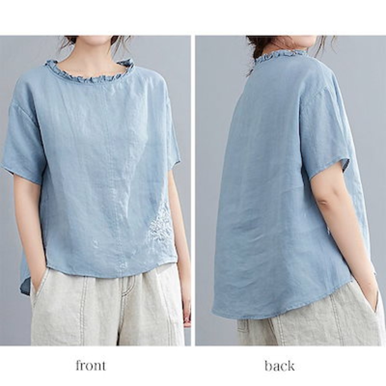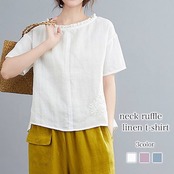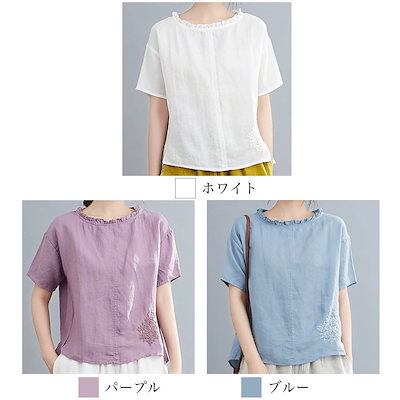 ブラウス レディース 首フリルリネンTシャツ リボン シフォン ブランド オフィス 50代 ノーアイロン おしゃれ 白 フリル 春 シャツ 事務服 フォーマル 涼しい 半袖 安い 大きいサイズ スーツ | DOKO-ME